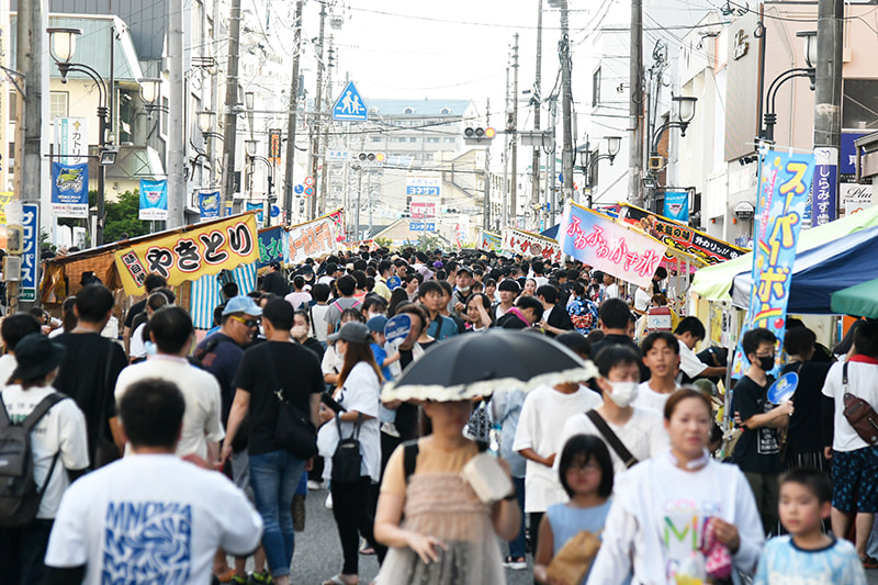 | 歩行者天国 | まつり当日は、中心商店街がまるごと歩行者天国に! |