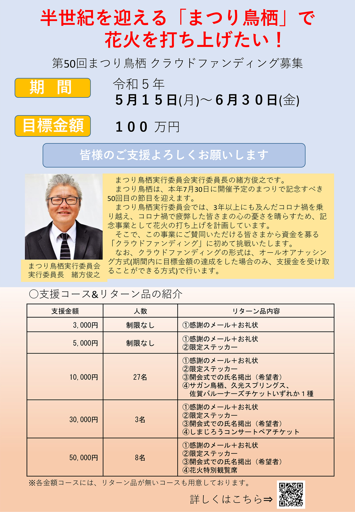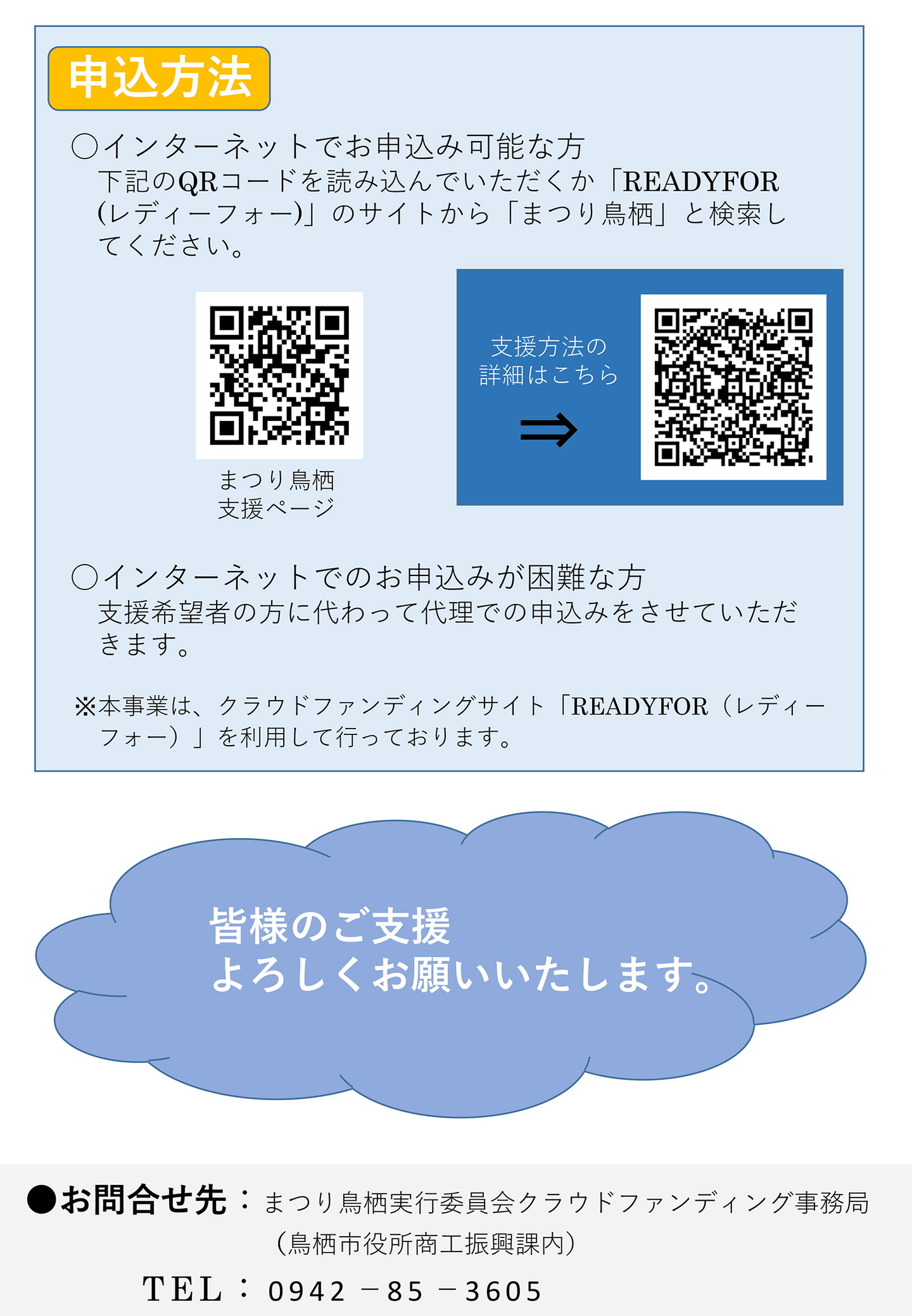 まつり鳥栖実行委員会クラウドファンディング事務局 Tel:0942-85-3605 |