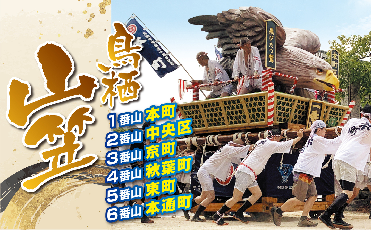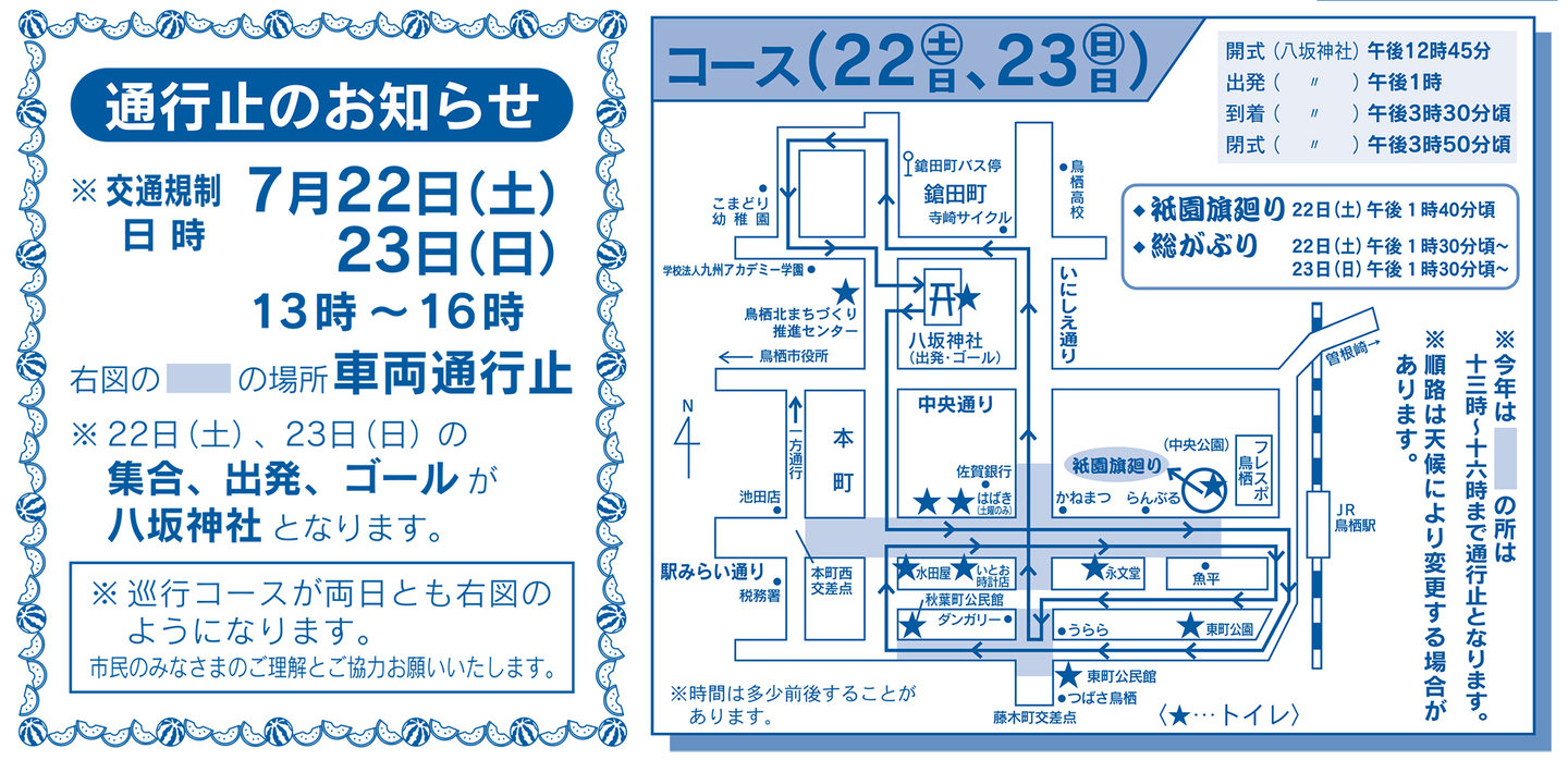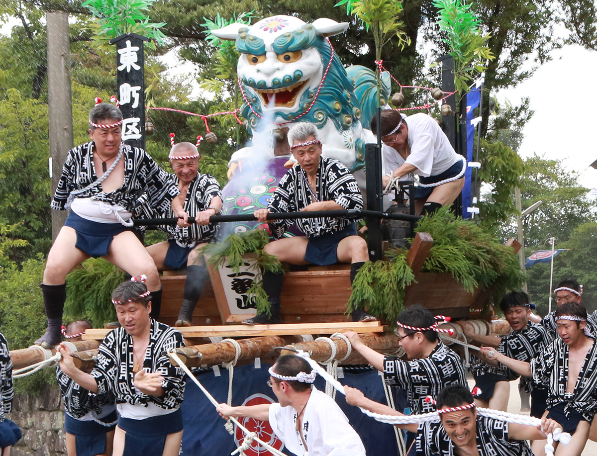 内 容 | 祇園旗廻り(中央公園・22(土)のみ13時40分頃〜)、総がぶり(本通り商店街一帯・22(土)23(日)13時30分頃〜) |