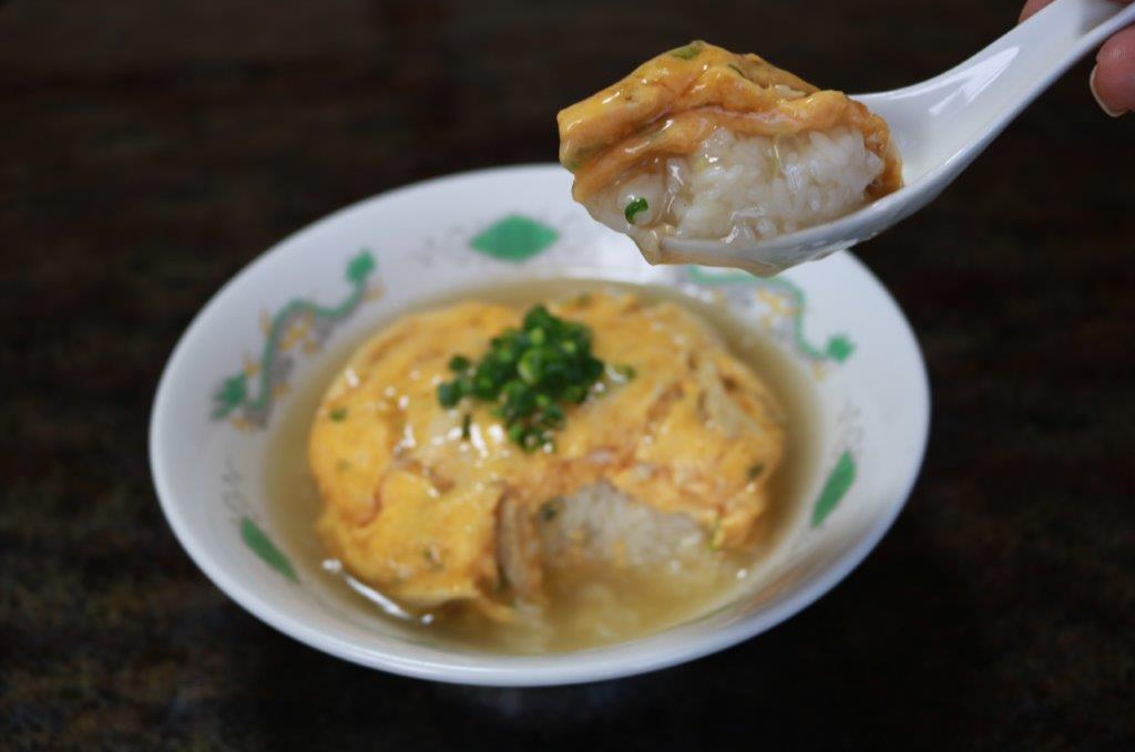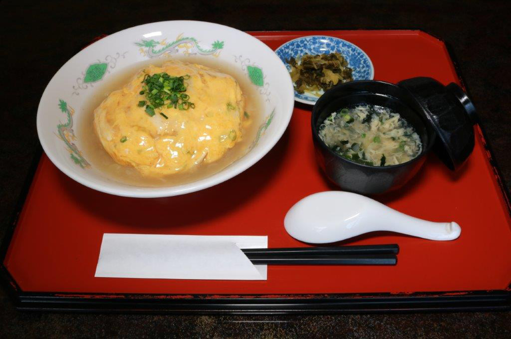 佐賀県産ふもと鶏を数時間煮込んで、それをふっくら玉子でとじ込め、その上にトロ~リあんをたっぷりかけた艶々の「とりこどん」。最初はあんを絡めていただきま~す!