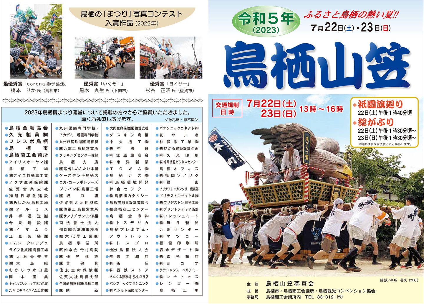 | お問合せ | 鳥栖山笠奉賛会(鳥栖商工会議所内)電話0942-83-3121(代表) |