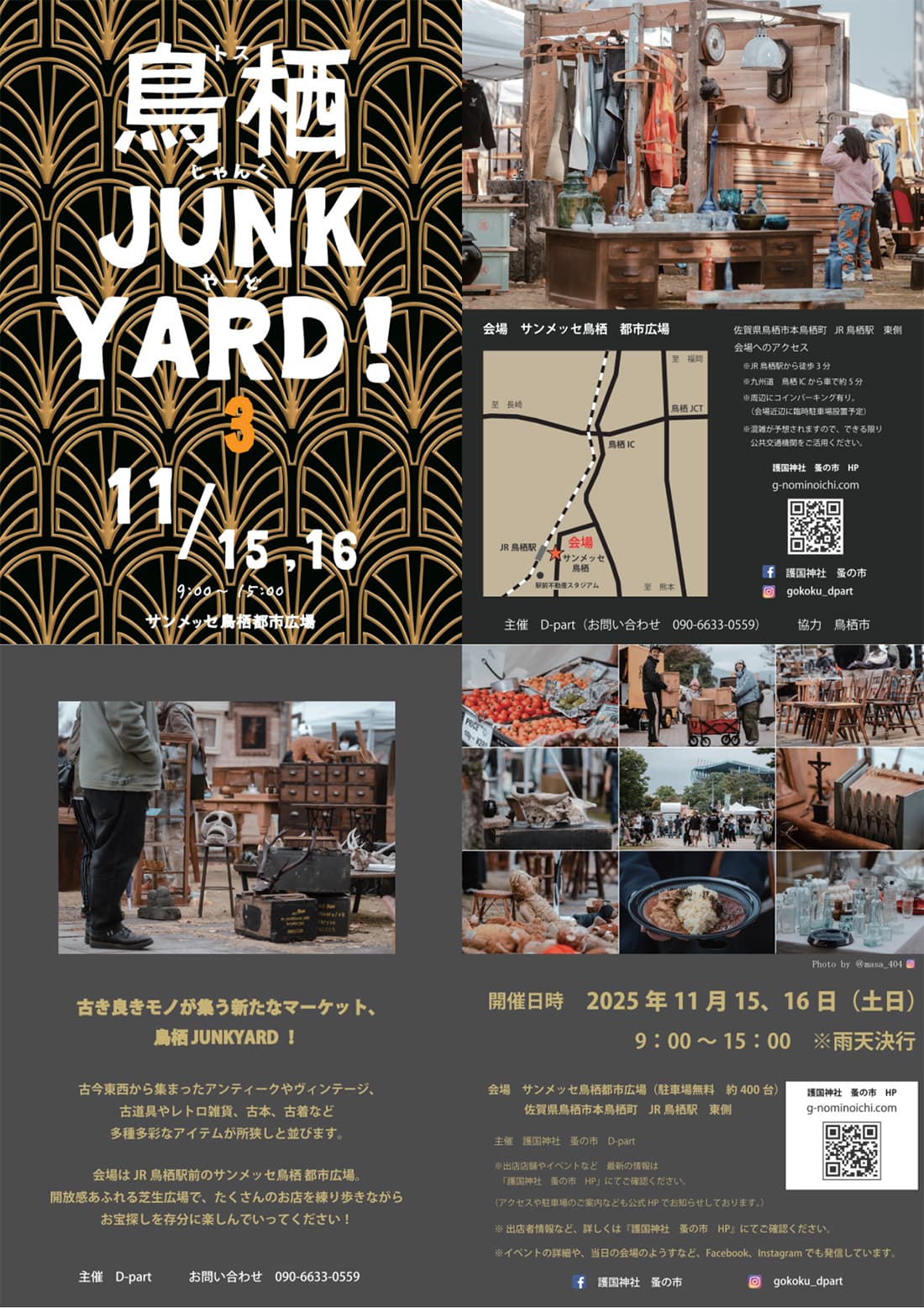 佐賀県鳥栖市本鳥栖町「サンメッセ鳥栖 都市広場」にて、マーケットイベント「鳥栖 JUNKYARD」が開催されます。古道具やレトロ雑貨、古本、古着など多彩な商品で賑わいます。掘り出し物を探しに、ぜひお越しください。
